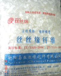 “絲絲緣”牌改性聚丙烯纖維截面為三葉型或圓型、抗堿性極高、化學穩定性好,在砂漿/混凝土中的分散性超好、握裹力超強、每立方米內的數千萬根纖維呈三維亂向分布于混凝土中,在混凝土中起一種純物理的加筋作用。