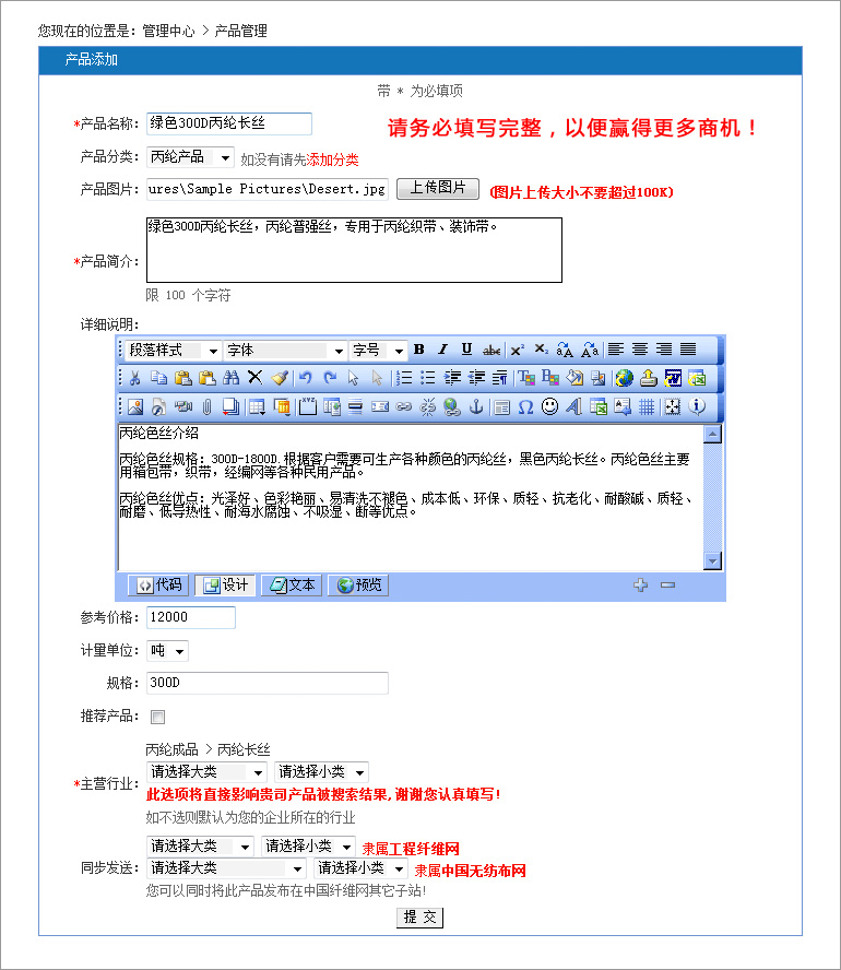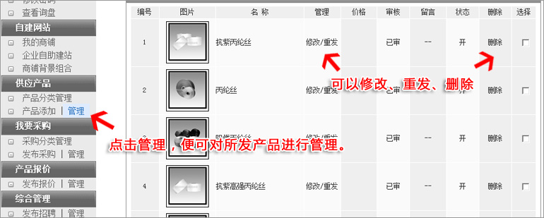 點擊供應(yīng)產(chǎn)品下面的:管理,便可對以往的產(chǎn)品信息進行編輯。
