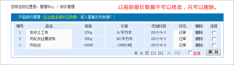 點擊產(chǎn)品報價下面的:管理,即可對發(fā)布的產(chǎn)品報價信息進行編輯。