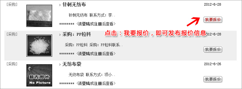 點擊采購頁面的:我要報價,即可對采購信息進行報價。